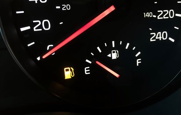 Forse non vi siete mai accorti, però di fianco al simbolo della pompa di benzina che indica il livello del carburante, c’è un piccolo triangolo equilatero con un lato parallelo alla pompa di benzina e quindi un vertice che punta verso l’esterno.