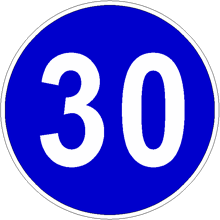 I cartelli stradali a forma quadrata con sfondo blu indicano la velocità che si consiglia (ma non obbligano) di non superare in condizioni ottimali di traffico.
