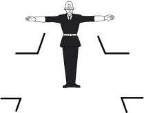Se il vigile si trova con le braccia aperte verso la nostra direzione ci è vietato: